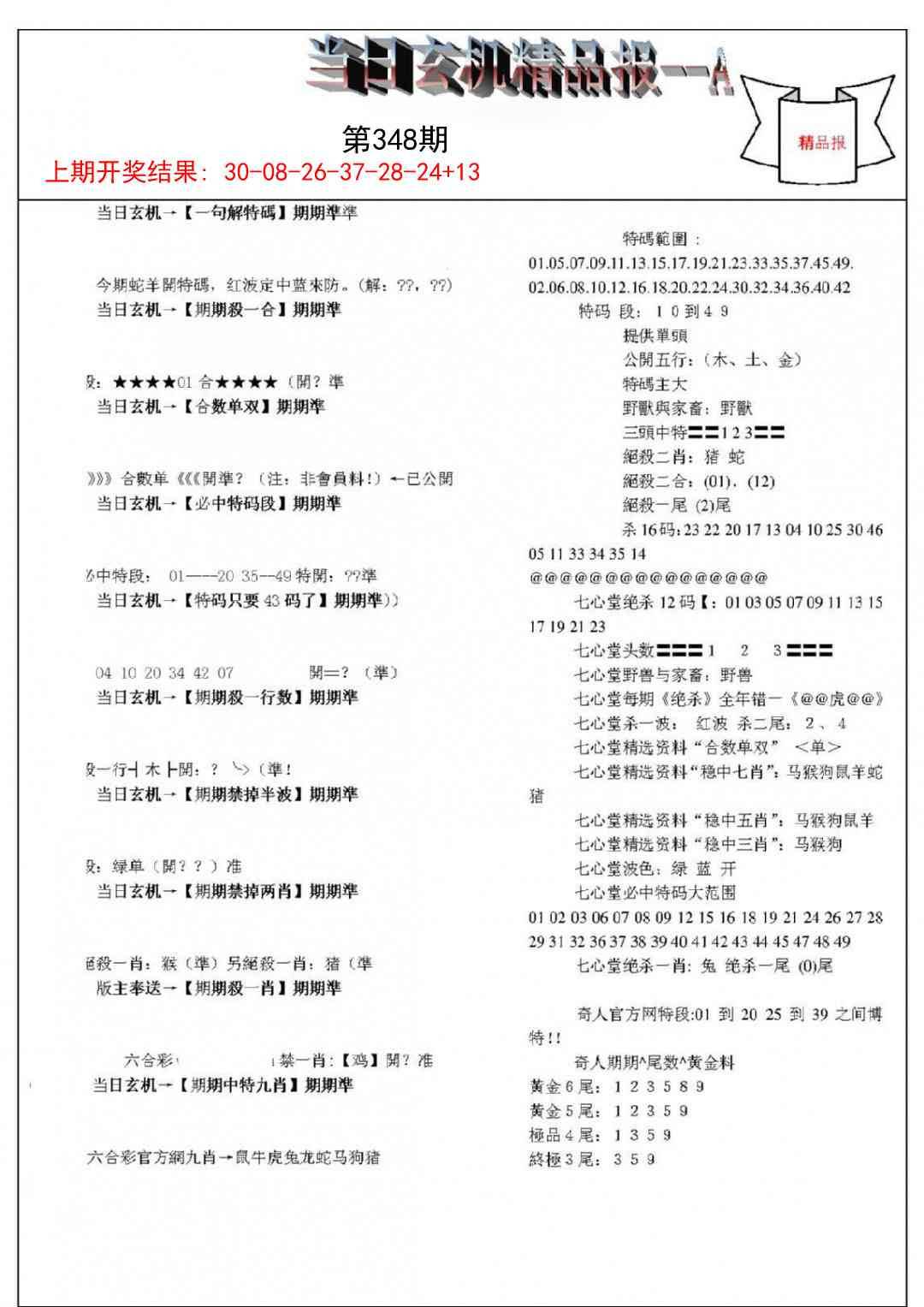 当日玄机精品报A