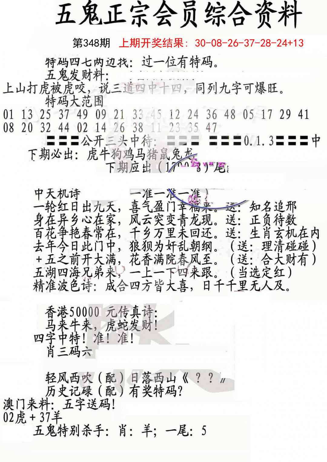正版五鬼运财会员料